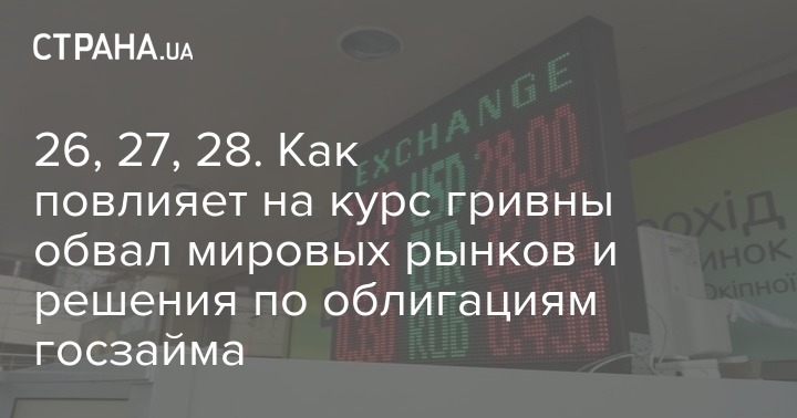 26, 27, 28. Как повлияет на курс гривны обвал мировых рынков и решения по облигациям госзайма