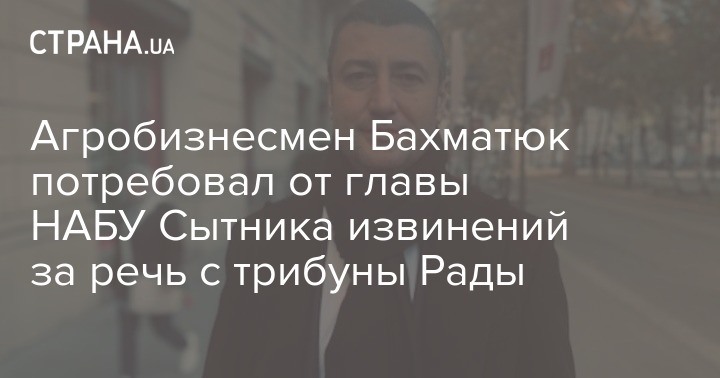 Глава аграрных предприятий "Укрлендфарминг" и "Авангард", один из крупнейших агробизнесменов Украины Олег Бахматюк потребовал от директора НАБУ Артема Сытника извинений за обвинение сотрудников компаний в "проплаченности" их акций протеста и потребовал от президента Владимира Зеленского увольнения Сытника.