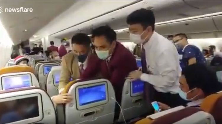 Авиапассажирка специально кашляла на стюардессу и затеяла драку с членами экипажа из-за проверки на коронавирус. Видео