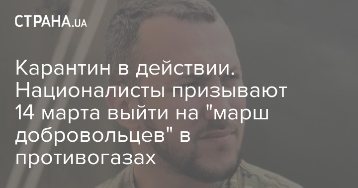 Несмотря на карантин, который 11 марта объявили в Киеве из-за коронавируса, националисты призывают участников "марша добровольцев", запланированного на 14 марта в столице, приходить на мероприятие, но надевать маски и противогазы.