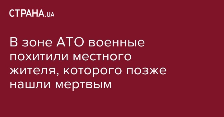В населенном пункте Зайцево Бахмутского района Донецкой области четверо военных, участвующих в АТО, похитили местного жителя, который позже был обнаружен мертвым. Об этом говорится в определении Артемовского суда. Об этом пишет "Таймер".