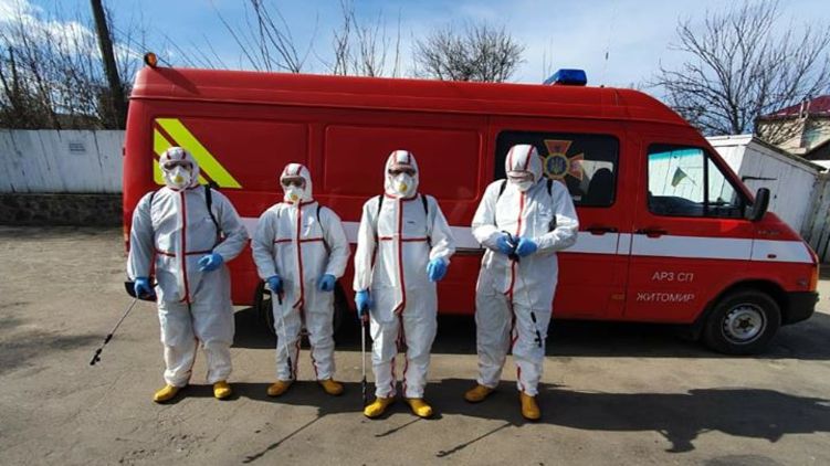 Бригада, проводившая дезинфекцию. Фото: Facebook/ vitaliy.bunechko