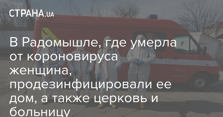 В городе Радомышль Житомирской области, где в пятницу зафиксирована первая в Украине смерть от коронавируса, провели дезинфекцию. Обработке специальным составом подверглись помещения, где незадолго до смерти находилась 71-летняя жертва вируса.