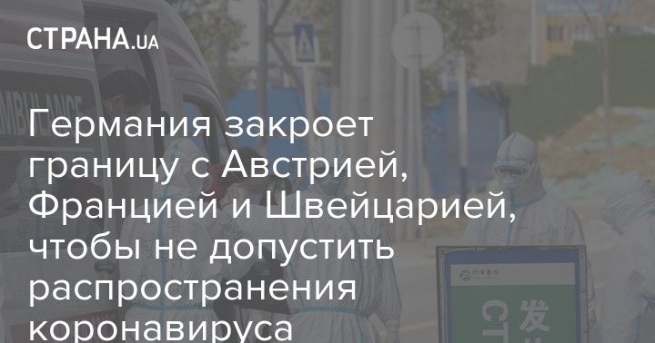Власти Германии с понедельника, 16 марта, с 08:00 по местному времени (09:00 по Киевскому времени), закроет границы с некоторыми европейскими странами. Нельзя будет въехать из Австрии, Франции и Швейцарии. Причина - распространение коронавируса.