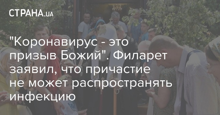 "Украинская Православная Церковь Киевского Патриархата с обеспокоенностью воспринимает эпидемию коронавируса и его последствия для миллионов людей в мире... Нам, христианам, верим в то, что миром управляет Бог, не надо забывать, что такие беды является проявлением гнева Божьего за грехи человечества. Каждая эпидемия, в том числе и эпидемия коронавируса, является призывом Божиим к покаянию, особенно это касается христиан, в последнее время резко отступили от христианских ценностей. Коронавирус - это призыв Божий к покаянию, к исправлению образа жизни", - говорится в обращении Филарета.