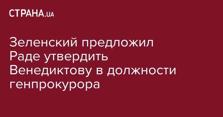 Официально подтверждена информация, ранее озвученная "слугами народа", о назначении преемницей Руслана Рябошапки Ирины Венедиктовой. Президент Украины Владимир Зеленский внес на рассмотрение Верховной Рады проект постановления о ее утверждении.