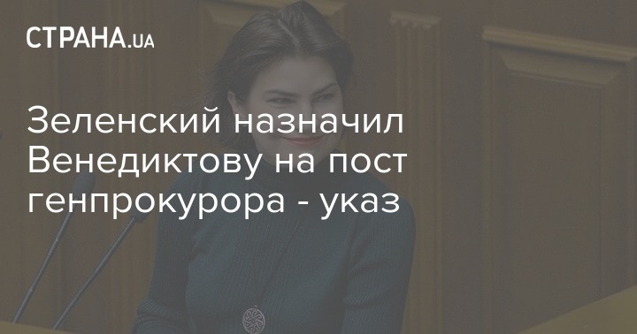 Глава Украины Владимир Зеленский подписал указ об увольнении Ирины Венедиктовой с должности и.о. директора Государственного бюро расследований и назначении ее не пост генерального прокурора