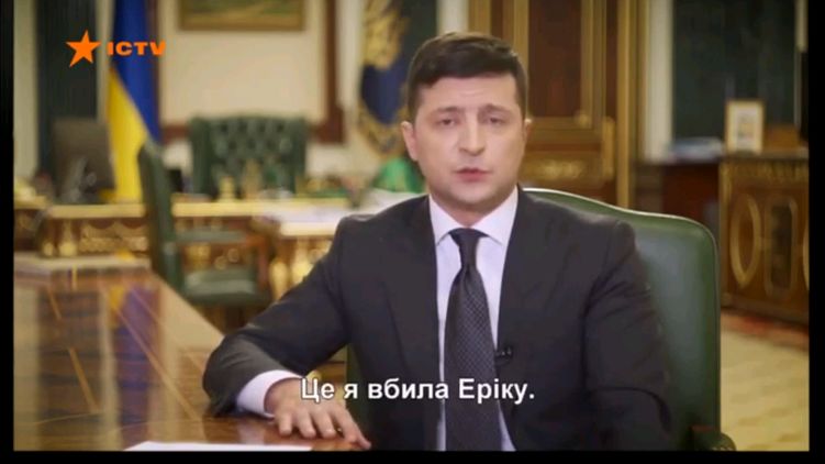 Когда Зеленский говорил о чартерных рейсах и застрявших в отпуске согражданах, внезапно появилась надпись: "Это я убила Эрику".