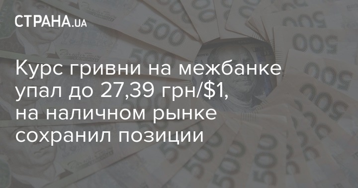 В среду, 18 марта, курс гривни на межбанковском валютном рынке снизился до 27,39 грн/$1 с 27,08 грн/$1 в предыдущий рабочий день. Котировки гривни к окончанию торгов составили 27,37-27,41 грн/$1. Курс национальной валюты на межбанке продолжил снижаться, несмотря на укрепление на открытии рынка до 27,03 грн/$1. Об этом сообщает "Интерфакс-Украина" со ссылкой на дилеров коммерческих банков.