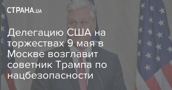 Делегацию США на праздновании 75-летия Победы 9 мая в Москве возглавит советник президента по национальной безопасности Роберт О'Брайен. Трамп, как и сообщалось ранее, не будет присутствовать на мероприятии.