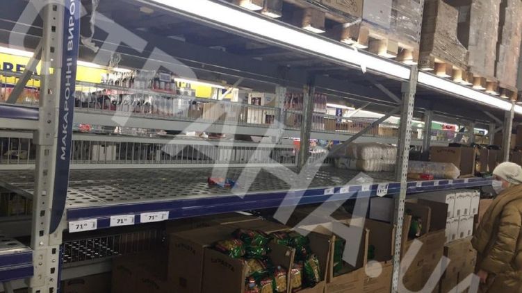 В магазине оптовой торговли "Метро", который находится в Киеве на Позняках, пустуют полки, на которых должны находиться крупы. В то же время мясной отдел полон продуктов.