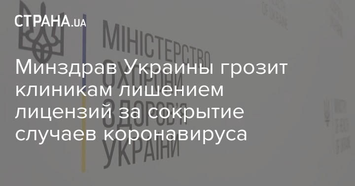 Минздрав Украины грозит клиникам лишением лицензий за сокрытие случаев коронавируса