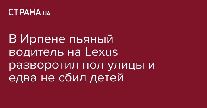 В Ирпене на улице Севериновской 2 августа пьяный водитель на Lexus снес несколько столбов, после чего вылетел на тротуар, несколько раз перевернулся и чуть не сбил детей. Об этом на своей странице в социальной сети Facebook сообщил руководитель проекта dtp.kiev.ua Влад Антонов.