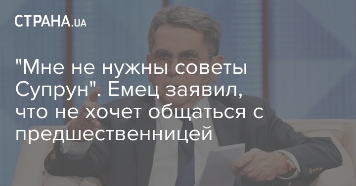 Глава Минздрава Илья Емец заявил, что не нуждается в советах своей предшественницы Ульяны Супрун, а также он не хотел бы с ней общаться.