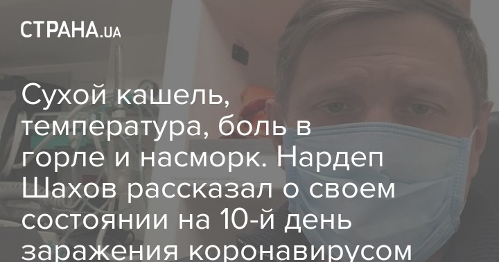 Народный депутат Сергей Шахов (группа "Доверие"), заболевший коронавирусом COVID-19, заявил, что на 10-й день болезни у него наблюдается сухой кашель, небольшая температура, боль в горле и насморк.