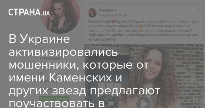 В социальной сети Facebook активировались мошенники, которые от имени известных украинских певиц предлагают пользователям поучаствовать в именном розыгрыше, где якобы нет проигравших и получить дорогой автомобиль, Iphone или просто денежный перевод на карту.
