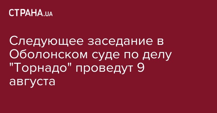 Следующее заседание в Оболонском суде по делу "Торнадо" проведут 9 августа