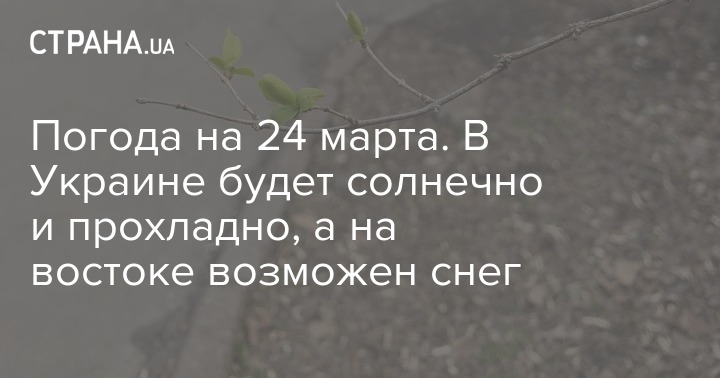 Во вторник, 24 марта,  в Украине ожидается  солнечная погода без осадков, лишь в восточных областях местами возможен небольшой снег. В западной и восточной частях страны на дорогах местами гололедица. Об этом сообщает Укргидрометцентр.