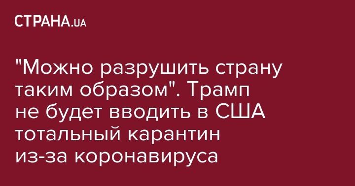 "Можно разрушить страну таким образом". Трамп не будет вводить в США тотальный карантин из-за коронавируса