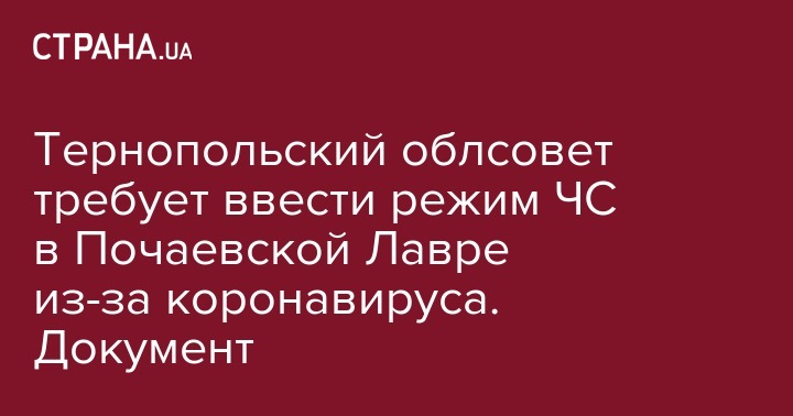 Тернопольский облсовет утвердил обращение депутатов к властям Украины, в котором они требуют, чтобы из-за угрозы коронавируса на территории Почаевской лавры и  прилегающей к ней территории был введен режим чрезвычайного положения.