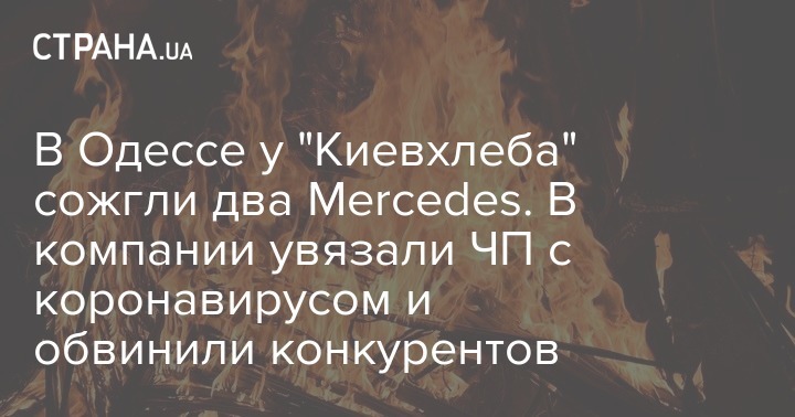 "Компания "Киевхлеб" заявляет о поджоге в Одессе в течение последних недель двух брендированных автомобилей Mercedes Sprinter. Авто уничтожены полностью, а предприятию нанесен ущерб почти на 2 млн гривен. По факту поджога возбуждено уголовное дело.
