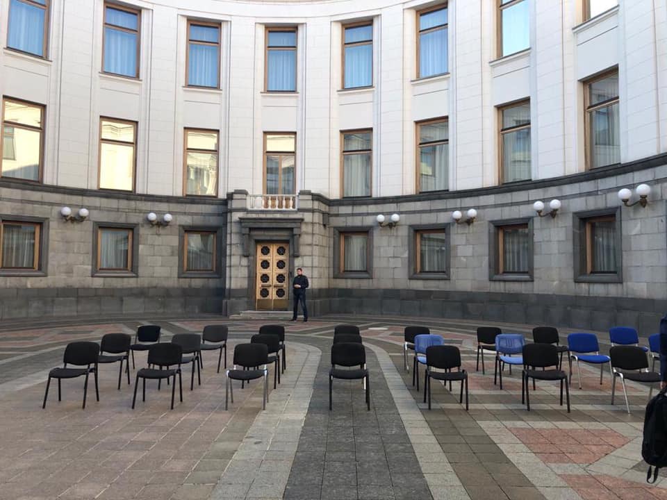 "У нас обсуждалось несколько вариантов. Быстрое заседание в зале, раздать всем маски, защитные элементы, поставить везде санитайзеры. Или во дворе Верховной Рады - расставив там стульчики на определенных расстояниях друг от друга, чтобы минимизировать контакты между депутатами. Практика с работой на улице уже была опробована в некоторых городских и облсоветах в Украине. Но пока не решено окончательно. Мы ограничены законом о Регламенте, который четко требует, чтобы заседание состоялось по адресу Грушевского, 5. Грушевского, 5 - это здание Верховной Рады и все ее помещения, в том числе двор. Но если собираться во дворе, там тоже есть свои сложности. Там не так много места, и нет технических возможностей для голосования. Поэтому варианты обсуждаем", - говорит депутат "Стране".