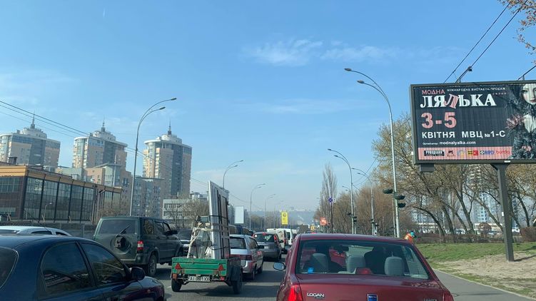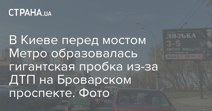 В Киеве перед мостом Метро образовалась гигантская пробка из-за ДТП на Броварском проспекте. Фото