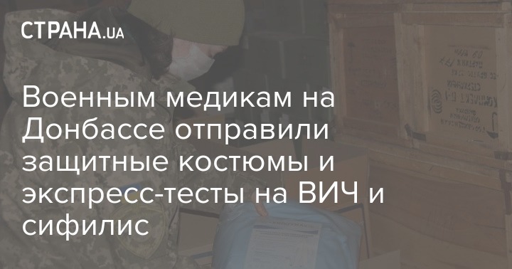 Военные медики, участвующие в операции Объединенных сил на Донбассе, получили партию медицинских средств, в числе которых - костюмы биологической защиты и экспресс-тесты для выявления гепатита, сифилиса и ВИЧ.
