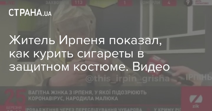 В Ирпене показали, как курить в защитном костюме. Скриншот