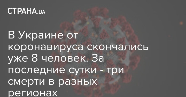 В Украине число умерших от коронавируса увеличилось до восьми человек. За минувшие сутки скончались трое больных в Ровенской, Сумской и Ивано-Франковской областях.