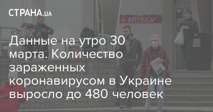 По данным ЦОЗ, по состоянию на 10:00 30 марта в Украине 480 лабораторно подтвержденных случаев Сovid-19, из них 11 летальных, 6 пациентов выздоровели. За сутки было зафиксировано 62 новых случая.