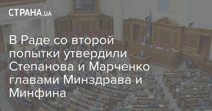 Народные депутаты Верховной Рады снова проголосовали за Максима Степанова на главу Минздрава. Его кандидатуру поддержали 246 голосов. Также Верховная Рада назначила Сергея Марченко на пост министра финансов, назначение поддержали 256 народных депутатов при необходимых 226 голосах.