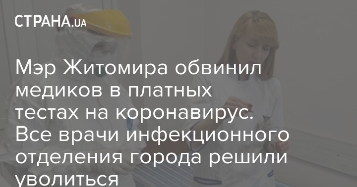 Мэр Житомира обвинил медиков в платных тестах на коронавирус. Все врачи инфекционного отделения города решили уволиться