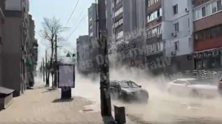 В Киеве улицы залило кипятком из-за прорыва трубы. Видео