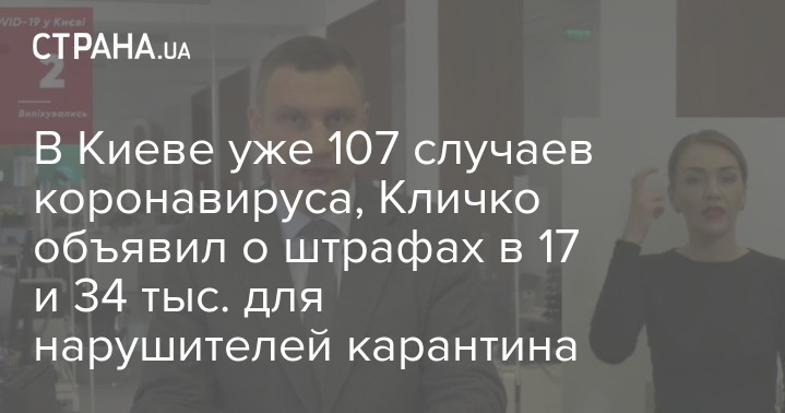В Киеве уже 107 случаев коронавируса, Кличко объявил о штрафах в 17 и 34 тыс. для нарушителей карантина