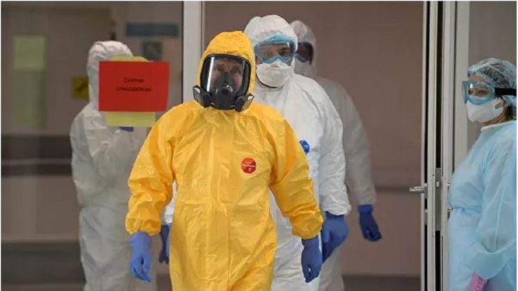 Президент РФ Владимир Путин в спецкостюме посетил больницу в Коммунарке. Фото: РИА Новости