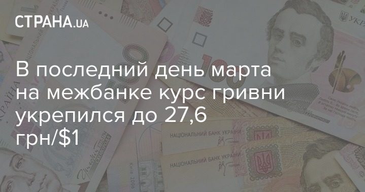Во вторник, 31 марта, на межбанковском валютном рынке курс гривни укрепился до 27,6 грн/$1 после снижения в понедельник до 28,105 грн/$1.