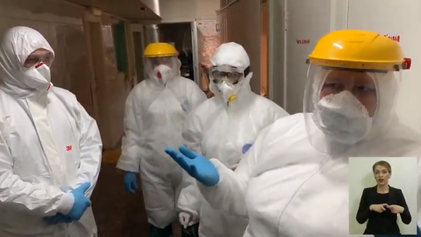 Демонстрируют ролик, как вчера Кличко посетил 9-ю клиническую больницу в Киеве. Там находились 11 пациентов с Covid-19 и еще четверых ждали. В реанимации 6 пациентов