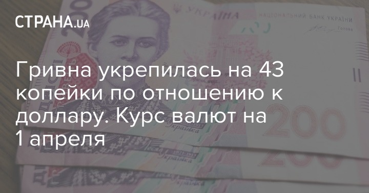 Гривна укрепилась на 43 копейки по отношению к доллару. Курс валют 1 апреля. Фото: Страна