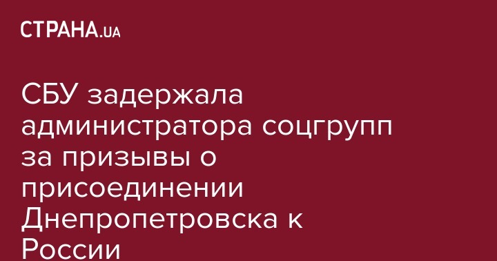 Сотрудники службы безопасности задержали в городе Каменское Днепропетровской области местного жителя, который администрировал группы в социальных сетях и призывал к созданию "Днепропетровской республики". Об этом сообщает пресс-служба СБУ