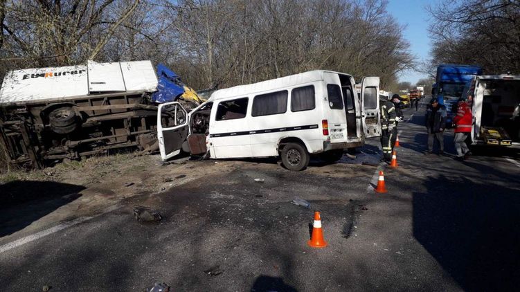 Семь человек пострадали в результате столкновения микроавтобуса Ford Transit и грузовика Mercedes-Benz Sprinter вблизи поселка Пантаивка Александровского района (Кировоградская обл.).