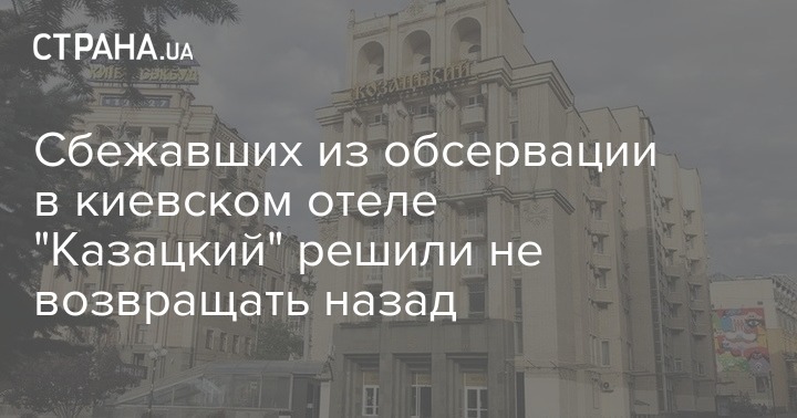 Сбежавших из обсервации в киевском отеле "Казацкий" решили не возвращать назад