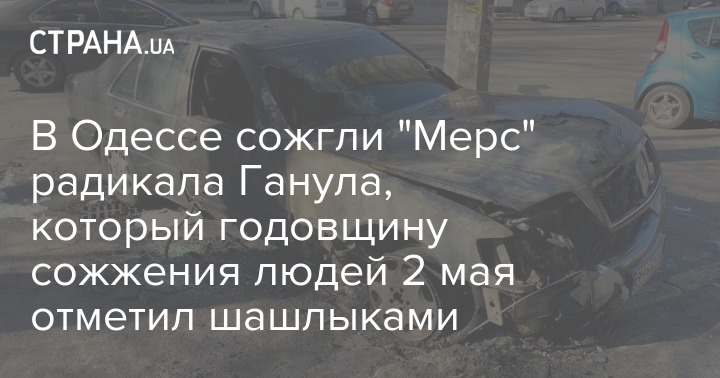 В Одессе сожгли "Мерс" радикала Ганула, который годовщину сожжения людей 2 мая отметил шашлыками