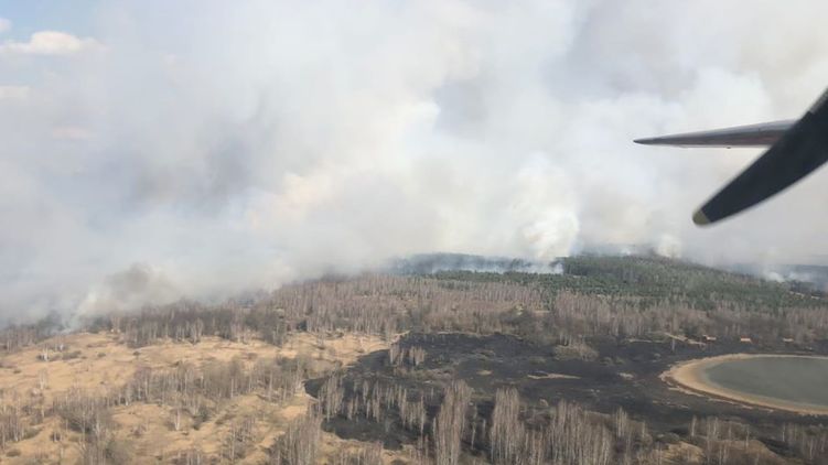 "4 апреля в 13:22 в ГосЧС поступила информация, что в Зоне отчуждения и безусловного (обязательного) отселения вблизи с. Владимировка Котовского лесничества возник верховой лесной пожар на площади 20 га. В 14:30 и в 14:53 два самолета Ан-32П ГосЧС вылетели из г. Нежин для тушения пожара в зоне отчуждения и безусловного (обязательного) отселения. В 15:33 к месту пожара вылетел вертолет ГосЧС МИ-8", - говорится в сообщении.