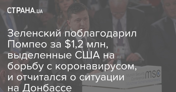 Зеленский поблагодарил Помпео за $1,2 млн, выделенные США на борьбу с коронавирусом, и отчитался о ситуации на Донбассе