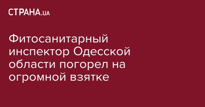 Главного государственного фитосанитарного инспектора Одесской области задержали при получении огромной взятки. Об этом сообщает пресс-служба ГПУ.