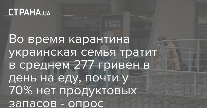 В среднем украинская семья тратит на еду 277 гривен день, а чтобы прожить месяц на карантине ей необходимо 8 826 грн. При этом 68% не запаслись продуктами на время эпидемии коронавируса.