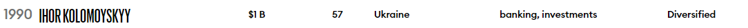 В рейтинге 2019 года Коломойский занимал 1947 место с состоянием $1,1. То есть за год минус 43 строчки и $100 млн. Если он потеряет еще сколько же в следующем году, то вылетит из списка Forbes.