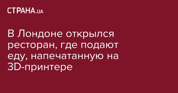 В Лондоне открылся первый в мире ресторан, где подают исключительно еду, напечатанную на 3D-принтере. Ресторан называется Food Ink. Об этом сообщает "Голос Америки".