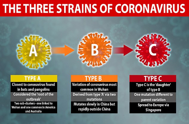 Условно они выделили три типа - А. В и С. Тип А - это исходный вирус, который передался людям от летучих мышей. Другие два типа - это его мутации.